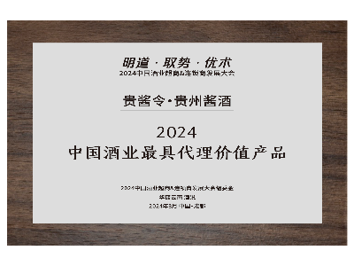 09 月, 2024中國(guó)酒業(yè)超商&連鎖商發(fā)展大會(huì)——2024中國(guó)酒業(yè)最具代理價(jià)值產(chǎn)品(貴醬令·貴州醬酒)