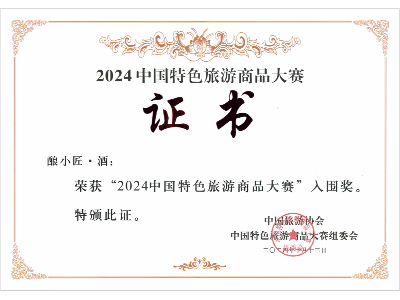 10 月, 2024年中國(guó)特色旅游商品大賽——“2024年中國(guó)特色旅游商品大賽”入圍獎(jiǎng)(釀小匠)